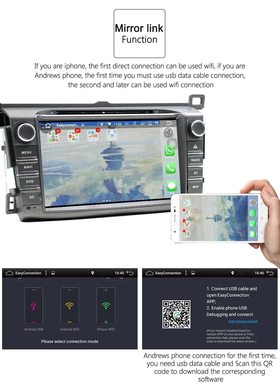 2 Din 8'' Quad core Android 7.1 Car DVD Radio Stereo player GPS Navi for Toyota RAV4 2013-2015 Bluetooth 2G RAM 1024*600 FREE MAP!!!!!!(install in innand) Free Gift: 1.GPS Antenna 2.Rear view camera Product Parameter OS: Pure Android 8.1Multi-Touch Capacitive Screen CPU: OctaCoreAllwinner T8Cotex A7 32GROM RAM: 2G Bytes DDR3 HD Digital Screen Resolution 1024*600px Support CMMB Digital TV (optional) Support USB DVR (optional) Support TMPS (optional) Support OBD (optional) Support WCDMA 3G internet surf (optional) About our service---click here OUR SERVICE: ① If you have any questions please contact us free time,we will reply within 12 hours. ② Please give us a chance to serve you,do not open thedispute,Dispute is handled by the platform, the platform is not professional, it can not solve your fundamental problems, trust us, when you haveproblems, please contact us as soon as possible,wehave a professional team to solve the problem for you. ③After-sale warranty: NO1: 1 year warranty period NO 2:Received 2 years can be extended warranty (paid optional) Logistics notification: We are NOT liable for ANY import tax, custom fee, Remote surcharge or customs delay. If the parcel is return back to us due to the buyers refusal to pay the above fees, we would NOT resend the parcel We are factory in China, for most model, we have them in stock, you just need to give us 2-3 days to test the device. 1. WORLDWIDE SHIPPING. (Except some countries and APO/FPO) 2. Orders processed timely after the payment verification. 3. We only ship to confirmed order addresses. Your order address MUST MATCH your Shipping address. 4. The images shown are not the actual item and are for your reference only. 5. SERVICE TRANSIT TIME is provided by the carrier and excludes weekends and holidays. Transit times may vary, particularly during the holiday season. 6. If you have not received your shipment within 30 days from payment, please contact us. We will track the shipment and get back to you as soon as possible with a reply. Our goal is customer satisfaction! 7. Due to stock status and time differences, we will choose to ship your item from our first available warehouse for fast delivery. FAQ: How to update GPS Map? First of all you need to download the map update from our website or anywhere else for WINCE. Then you need to copy them to the GPS SD Card and set the navigation path to the navigation program through setting. Is it possible to listen to music or radio while using navigation ?! Yes, it is possible to listen to radio or music while using the navigation system. Clayton devices are using a unique technology that makes listening to music happen when you are using the navigation system. Do these units support steering wheel control ?! Yes of course. For each different car model, there is different CAN-Bus ( Built in or separate unit ) that comes with the unit to match the unit to the vehicle amplifier and steering wheel control. Can we install the DVD Units our self ? It is preferred that the installation to be done by a professional person. We are not responsible for the damages that might occur to the dashboard of the car while installing the device. So it is better that a professional person installs the unit on the cars. Payment 1) We accept Alipay, West Union, TT. All major credit cards are accepted through secure payment processor ESCROW. 2) Payment must be made within 3 days of order. 3) If you can't checkout immediately after auction close, please wait for a few minutes and retry Shipment 1. WORLDWIDE SHIPPING. (Except some countries and APO/FPO) 2. Orders processed timely after the payment verification. 3. We only ship to confirmed order addresses. Your order address MUST MATCH your Shipping address. 4. The images shown are not the actual item and are for your reference only. 5. SERVICE TRANSIT TIME is provided by the carrier and excludes weekends and holidays. Transit times may vary, particularly during the holiday season. 6. If you have not received your shipment within 30 days from payment, please contact us. We will track the shipment and get back to you as soon as possible with a reply. Our goal is customer satisfaction! 7. Due to stock status and time differences, we will choose to ship your item from our first available warehouse for fast delivery. 8. For free shipping product, the seller have the final call. The buyer can choose shipping method, but the seller has the final decide about the shipping method. The seller can choose other shipping method. Return/ Refund 1. You have 7 days to contact us and 30 days to return it from the date it was received. If this item is in your possession more than 7 days, it is considered used and WE WILL NOT ISSUE YOU A REFUND OR REPLACEMENT. There are NO EXCEPTIONS! Shipping cost is bear by both seller and buyer in half. 2. All returned items MUST BE in the original packaging and you MUST PROVIDE us with the shipping tracking number, specific reason for the return, and your po#. 3. We will refund YOUR FULL WINNING BID AMOUNT, upon receipt of the item in its original condition and packaging with all components and accessories included, AFTER BOTH Buyer and Seller cancel the transaction from aliexpress. OR, you may choose to have a replacement. 4. Buyer have the duty to check the parcel carefully before signing the parcel. Once the parcel is signed, seller think buyer got the product in well condition. If buer found the parcel empty after they singed, Seller are not responsible for this. Sell wont refund buyer and wont resend buyer a parcel. So the buyer should check the packge before they sign and pick up the packgage. (If the buyer found the package is empty, please refuse to sign and contact us.) Warranty 1. 12 months Manufacturer`s limited Warranty for defective items (excluding items damaged and/or misused after receipt). Accessories come with a 3-month warranty. 2. Defective items MUST BE reported and returned within the warranty period (and in the origi